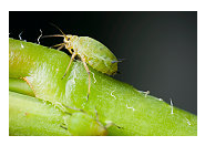 Cucumber Beetles are either spotted or striped. They usually feed on plant roots but adult cucumber beetles will attack the foliage and stems of plants as well. Easier to spot, these bright green pests can be found on both vegetables and flowers. Adult cucumber beetles can transfer viral and bacterial plant diseases.
